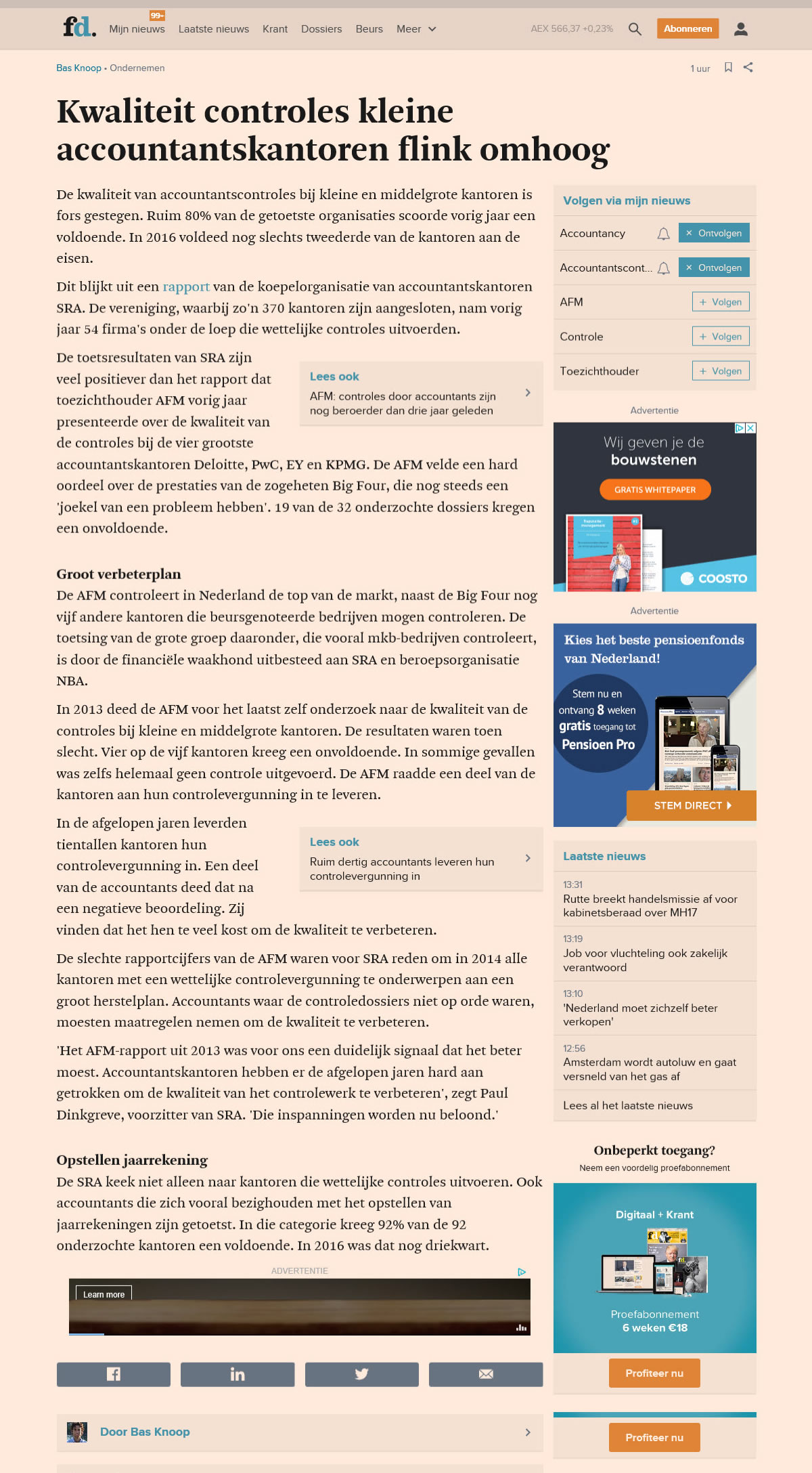 "De extra inzet van SRA op het aanjagen van vaktechnische kwaliteit via Samen Beter leidde aanvankelijk tot discussie met kantoren. De verplichte nulmeting leverde bijna 60 protesten op. Maar al doende, in de opvolging van de kantooranalyse en verbeterplannen, zagen onze reviewers bij SRA-leden meer focus op en beleving bij kwaliteit ontstaan. Kantoren vroegen zelf om (dossier)mentoring. Daarnaast hebben SRA Vaktechniek en Educatie op basis van onze toetsingsbevindingen nieuwe producten over bijvoorbeeld steekproeven en IT ontwikkeld, die hebben geleid tot toepassing ervan in de praktijk".